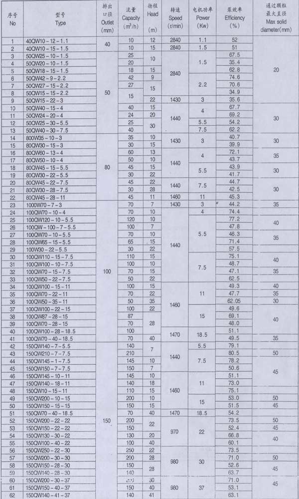 QW型系列混流式潛水泵系單級(jí)、單吸、軸向吸入、立式、機(jī)電一體、葉輪與電機(jī)軸直聯(lián),潛入泥漿、原油或清水等介質(zhì)中工作,輸送介質(zhì)的混合物比重為1:1-1:1.45。是油田石漬鉆井過程中抽送漿、清水或原油至循環(huán)泥漿池的配套設(shè)備。也是電廠礦山、煉油、造紙、印染、環(huán)保、市政工程、化工、漁塘鹽廠、釀造、大理石廠、建筑、煤礦等行業(yè)抽排泥漿和污水理想的泵型。同時(shí),也可根據(jù)用戶的實(shí)際使用要求及介質(zhì)情況,設(shè)計(jì)生產(chǎn)其它規(guī)格型號(hào)產(chǎn)品.